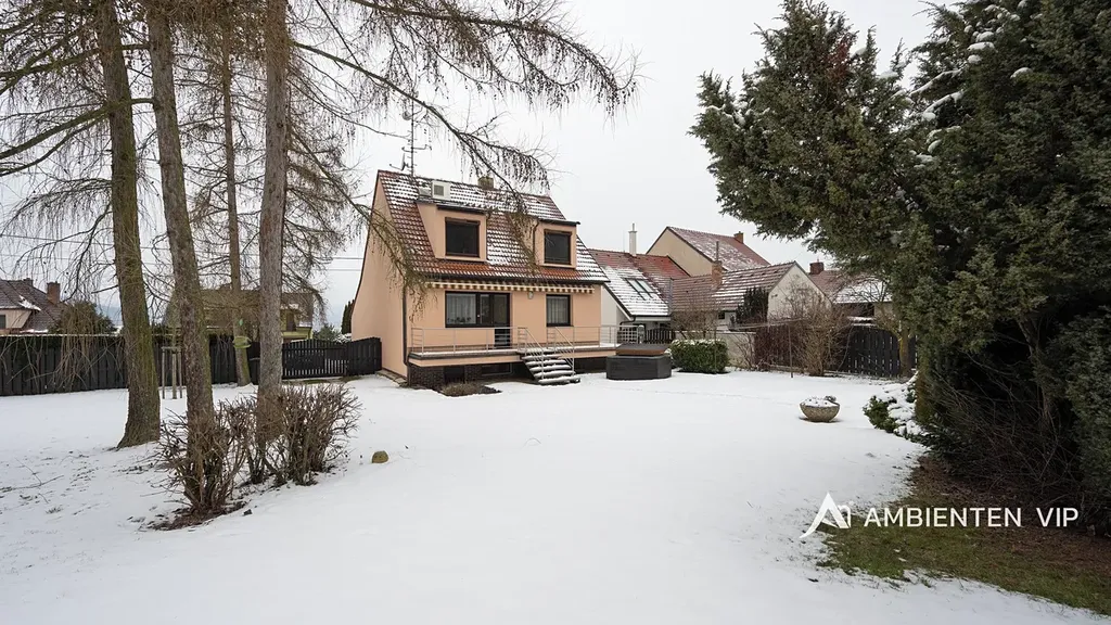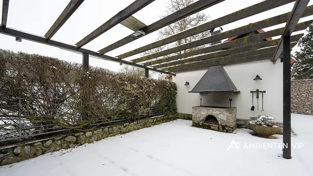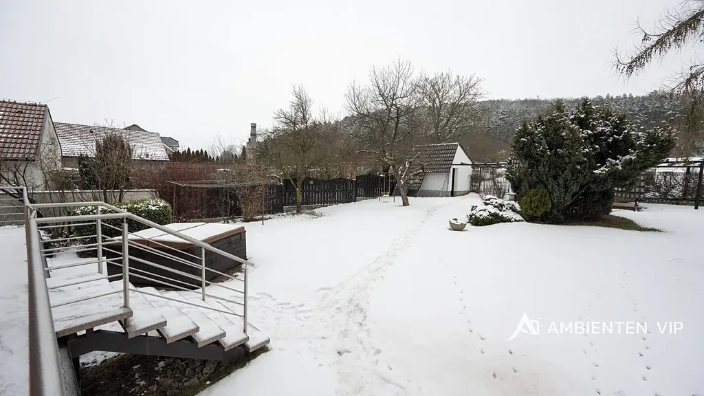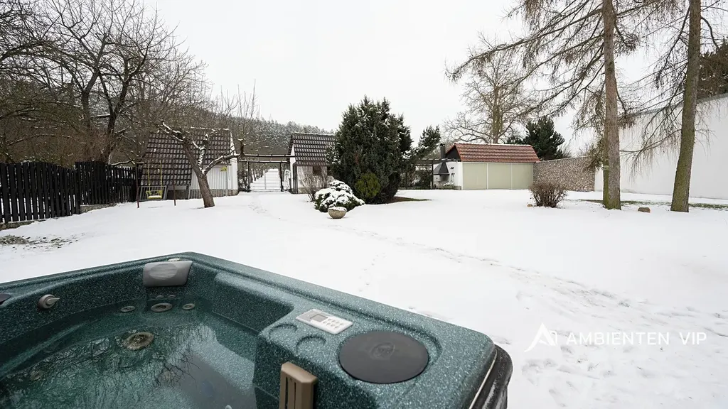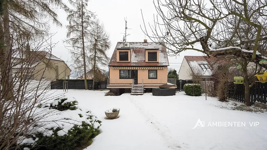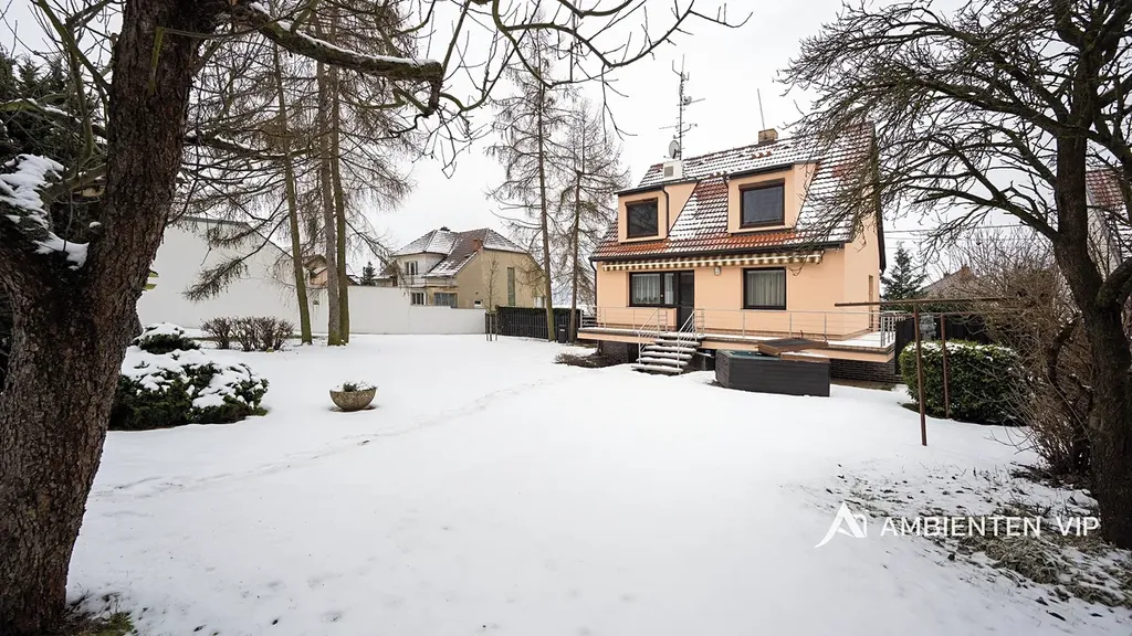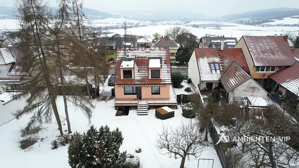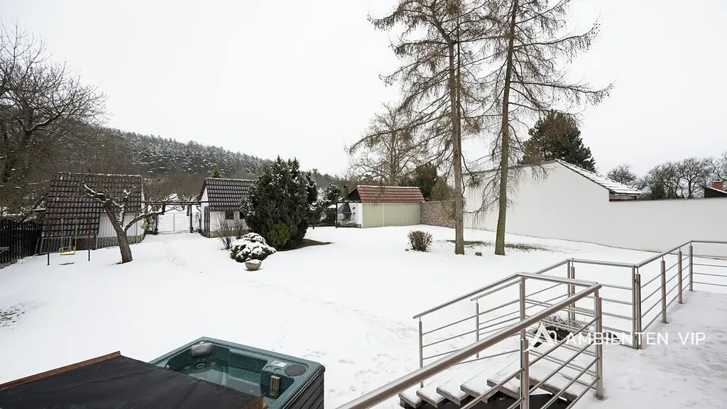 Ambienten vip vám exkluzivně nabízí prodej samostatně stojícího rodinného domu 4+kk s podsklepením pod celým domem. Je v dobrém technickém stavu o ZP 93 m2, UP 160 m2, CP pozemku 3.639 m2. Nemovitost je z roku 1991 a je ve velmi dobrém technickém stavu. Navazující pozemky, které jsou součástí prodeje jsou dle územního plánu určené pro další výstavbu domů. Nemovitost je ihned k dispozici k nastěhování a je možné ji odkoupit vč. kompletního vybavení v domě. Součástí prodeje je i vířivka. Tepelné čerpadlo vytápí celý dům a zajišťuje i ohřev vody do zásobníku. V domě je bateriové úložiště 15 Kwh. Nemovitost je cihlová, zateplena minerální vatou 12 cm, střecha je zateplena 24 cm vaty + polystyrénem. Střešní krovy jsou dřevěné. Střešní krytina je betonová taška. Na střeše jsou solární panely 12 ks. Dalším zdrojem vytápění je krb umístěný v obývacím pokoji s litinovou krbovou vložkou. V domě jsou radiátory a v koupelnách otopné žebříky. Nemovitost je napojena na veřejný vodovod. Studna na pozemku není. Pozemek kolem celého domu je kompletně oplocený. Pakování vozů je možné v garáži dva vozy za sebou a parkování dalších min. 5 vozů je před domem na vlastním pozemku. Garážová vrata jsou na dálkové ovládání. V suterénu domu se nachází hala, technologie, sušárna a garáž pro dva vozy. V 1 NP domu je otevřená dispozice obývacího pokoje s kuchyní a jídelnou orientovaná na JZ stranu směrem do zahrady a k lesu. Nabídne vám nádherné výhledy na okolní krajinu. Nemovitost je vybavena alarmem, klimatizací ve 2 NP vč. venkovních žaluzií, čtyřkvadrantním elektroměrem, kdy neplatíte zálohy za energie, ale za skutečnou spotřebu. Nemovitost má vlastní septik 10 m3, avšak přípojka kanalizace je přímo před domem s možností napojení na ni. V domě se nachází dvě koupelny v 1NP se sprchou, toaletou a umyvadlem ve 2 NP s vanou, umyvadlem a toaletou. Otevřená dispozice 1 NP vám nabídne příjemné posezení s možností vstupu do zahrady přes prostornou terasu, kterou lemuje zábradlí z nerezu. Ovocné stromy v zahradě jsou: jabloňe 29 ks, třešňě 3 ks, višňě 2 ks, švestky 5 ks, ryngle – švestky 10 ks, ořech 1 ks. Dále jsou v zahradě ovocné stromkové keře angrešť červený a bílý 6 ks, rybíz 1 ks, ostružiny zahradní 18 ks. Dále je na zahradě skleník s možností pěstování vlastní zeleniny a další tři drobné stavby. Jedna z nich je kůlna pro zahradní nábytek či nářadí, další slouží jako vinotéka s možností příjemného posezení u grilu s přáteli. Pokud vás tato investičně zajímavá nemovitost zaujala, tak si neváhejte sjednat její prohlídku s námi. Potenciálně nabízí možnost výstavby dalších 3-4 domů.