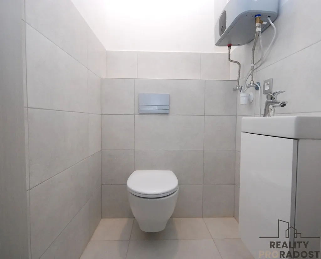 Dispozice bytu je následující: prostorná vstupní chodba, koupelna se sprchovým koutem, umyvadlem a místem na pračku a sušičku, samostatné WC, technická místnost vybavená policovým regálem, kuchyně se spížkou, 1 x ložnice se vstupem na terasu. Pokoje v bytě jsou neprůchozí.