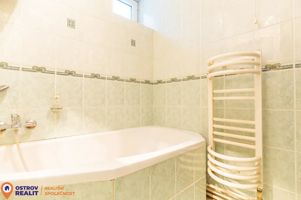 Tato druhá koupelna zároveň slouží jako technická místnost, protože je v ní umístěn jak kotel na tuhá paliva, tak plynový kotel. Z této části je přímý vstup na dvůr. Na zahradu je zároveň vstup i přes chodbu domu.