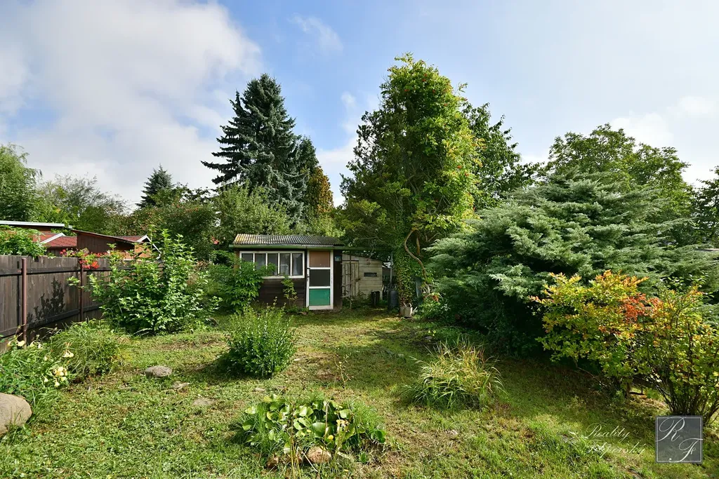 Na zahradě aktuálně stojí stavba bez č. p. i č. ev, zapsaná v katastru nemovitostí, se zastavěnou plochou 11 m2. Ta je využívána jako sklad zahradního náčiní. Dále se zde nachází dočasná stavba sloužící jako odpočinkové zázemí k zahradě s podlahovou plochu hlavní místnosti 13,6 m2 a verandou o výměře 6 m2. Tento objekt je v celkově velmi dobrém stavu a je opatřen i základním zateplením obvodového pláště.