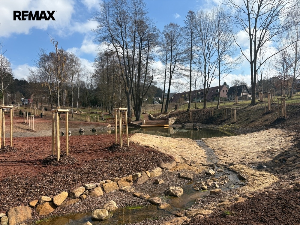 Velkou přidanou hodnotou je i skutečnost, že Město Hronov aktuálně dokončuje realizaci nového moderního parčíku s přírodním koupacím jezírkem, který vzniká přímo naproti pozemku přes cestu.