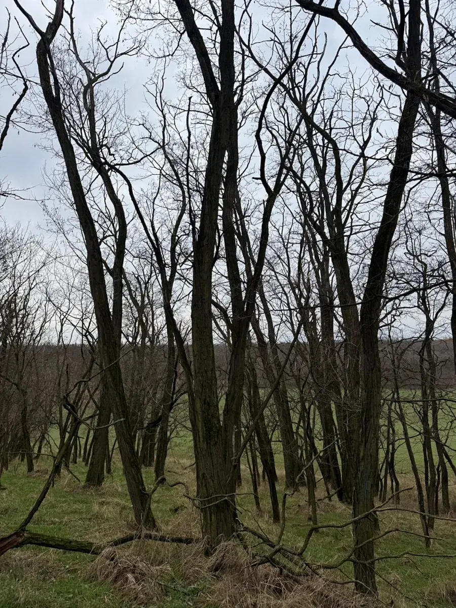- p.č. 1210/8 vedená jako lesní pozemek o celkové výměře 1 866 m2, z toho vlastníme podíl 1/3 tedy 622 m2 (stáří lesa 79 let - zastoupení dřevin akát).