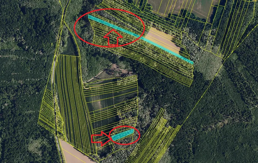 Parcela č. 1210/8 je k těžbě (na p.č. 1110/1 již těžba proběhla).