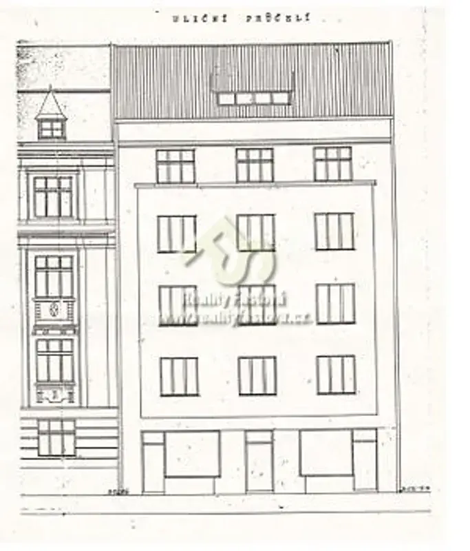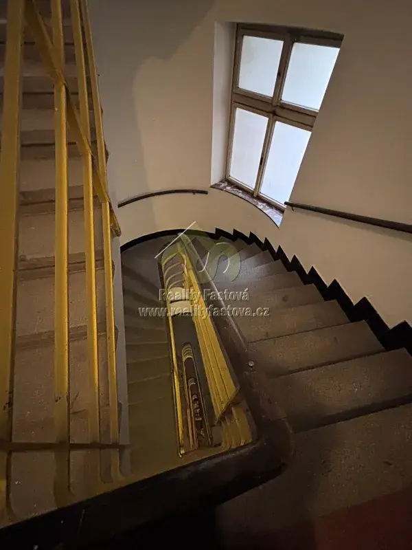 Byt se nachází ve 4.NP domu, přičemž dům má 5 NP a v každém patře je vždy pouze jeden byt. V přízemí domu jsou 2 obchodní prostory a jeden malý byt ve dvoře domu.