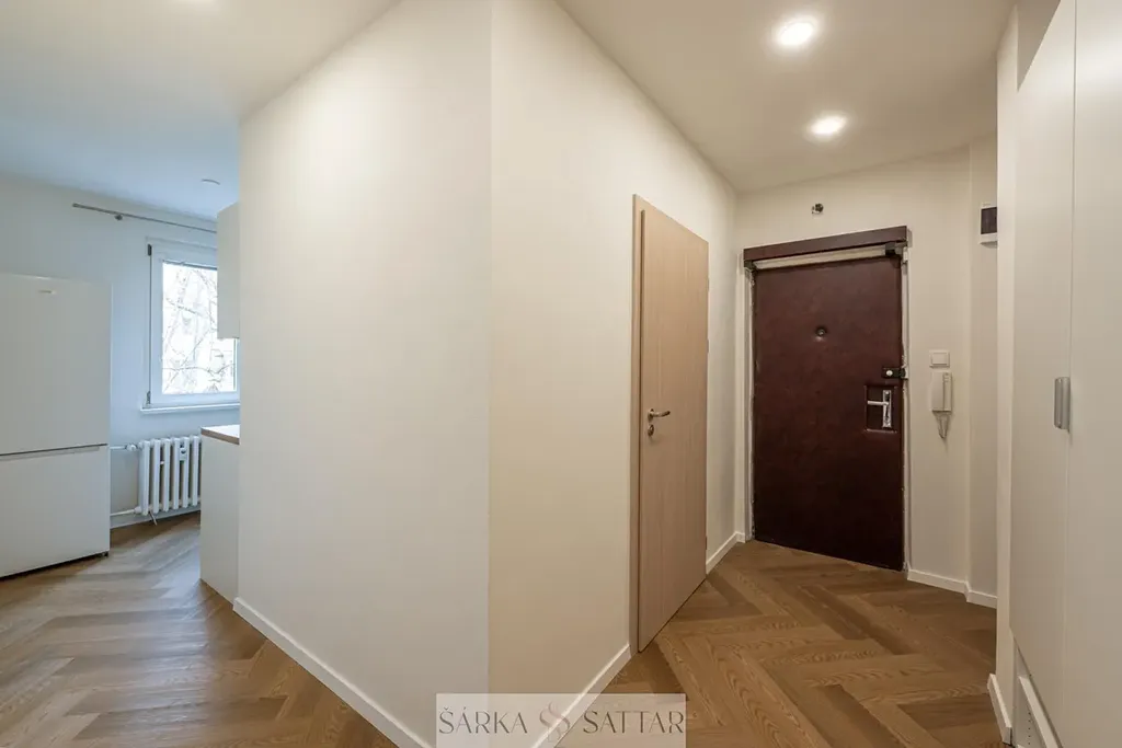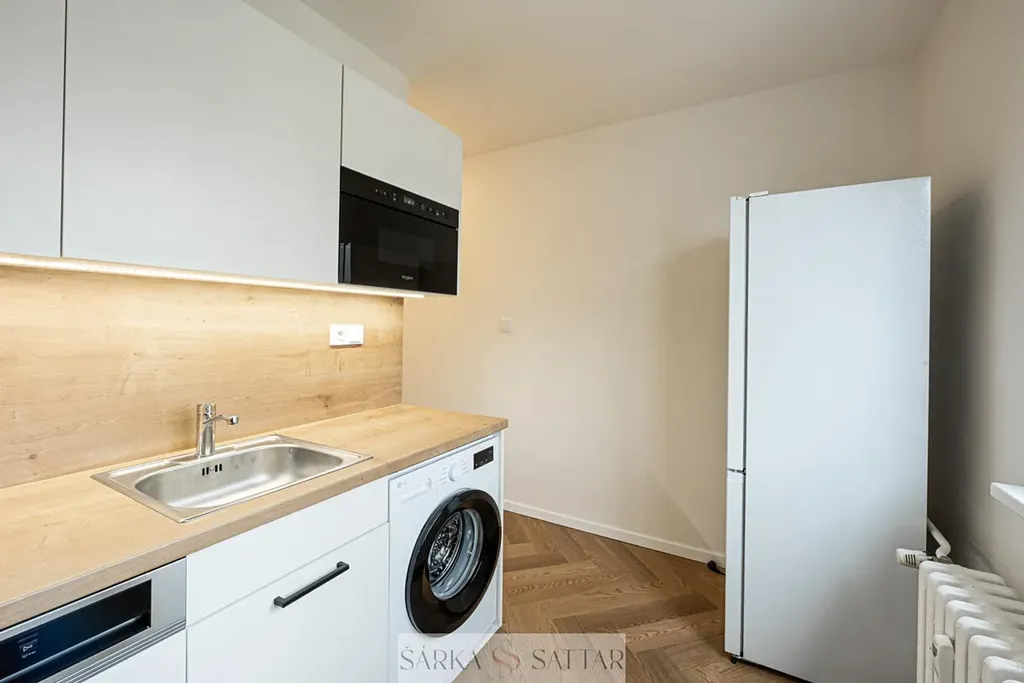 Tento krásný světlý byt prošel kompletní rekonstrukcí a má moderní plně vybavenou kuchyňskou linku s lednicí, mrazákem, el. troubou, indukční deskou, digestoří, mikrovlnnou troubou, myčkou a pračkou. V koupelně je sprchový kout, otopný žebřík, umyvadlo se zrcadlovou galerkou a toaleta. Ložnice i obývací pokoj mají parketovou podlahu. Na chodbě je vestavná skříň.