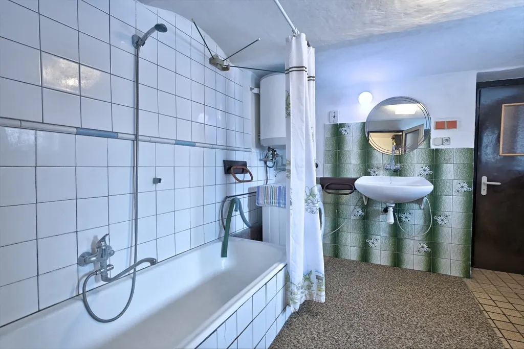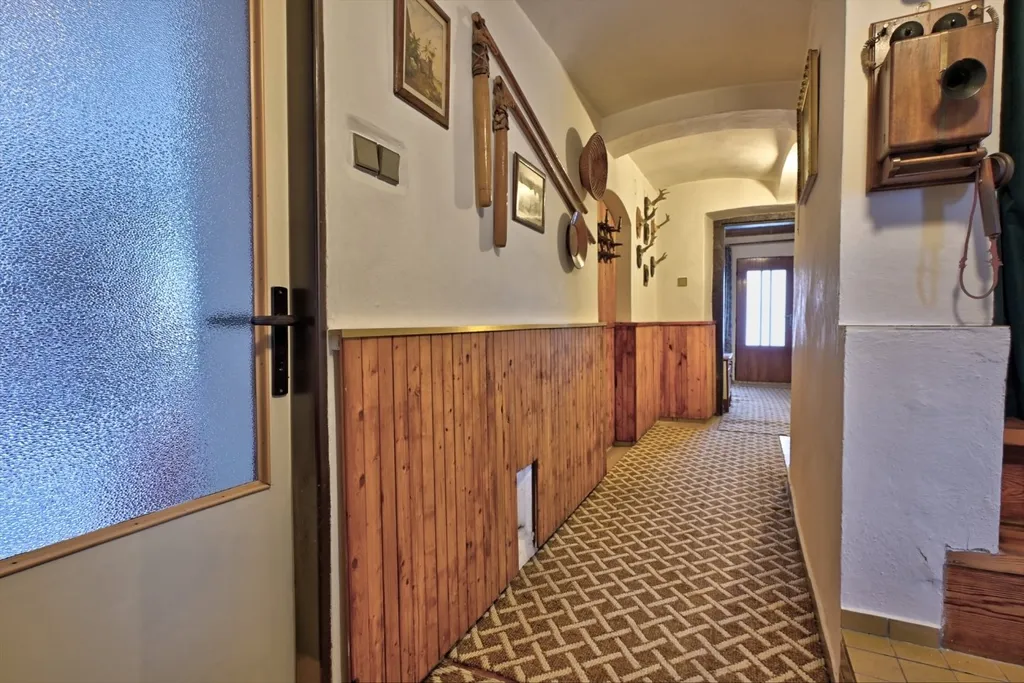 Nabízíme rodinný dům v obci Dolní Kalná v části Slemeno. Zděný dům s původními prvky obytné a hospodářské části má zachované klenuté stropy a kamenná ostění. V podkroví je jedna obytná místnost a rozsáhlé prostory pro úpravy a využití dle představ nového vlastníka. V přízemí je prostorná ložnice a obývací pokoj s částečně oddělenou kuchyní. Na konci chodby je vstup do spižírny, do koupelny s odděleným WC a do malého sklepa. K obytnému domu navazuje garáž s dílnou a zastřešením pro dřevo. Dům je obklopený rovinatým pozemkem. Je napojen na vodovodní řád a septik. Vytápění je zajištěno lokálními kamny či elektrickými přímotopy, ohřev vody elektrickým bojlerem. Momentálně je využívaný pro rekreaci. Obchody a služby se nachází v nedalekém Hostinném 5 km a Vrchlabí vzdáleném 15 km.