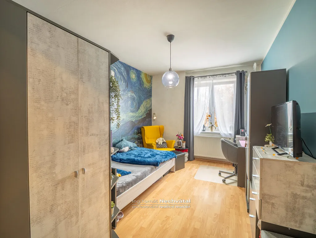 K bytu náleží nadstandardně velký sklep o ploše 8 m². Poslouží nejen jako sklad, ale i jako dílna nebo bezpečné zázemí pro kola.