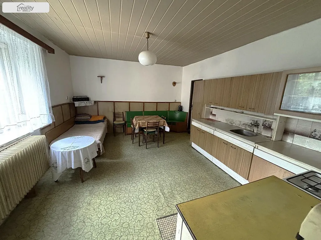 Dům je samostatně stojící, patrový. Celková výměra pozemku je 1638 m². Při vstupu do domu zádveří, prostorná předsíň, vchod na samostatné WC, prostorné kuchyně se spíží a z druhé strany chodby vchod do dvou průchozích pokojů. dále pak vchod do koupelny - vana, ohřev vody bojlerem, komory a malého prostoru, kde je umístěn kotel na tuhá paliva. V 1. patře prostorná podesta a vchod do dvou samostatných místností, u jedné balkon a malý půdní prostor který může být využit jako šatna.