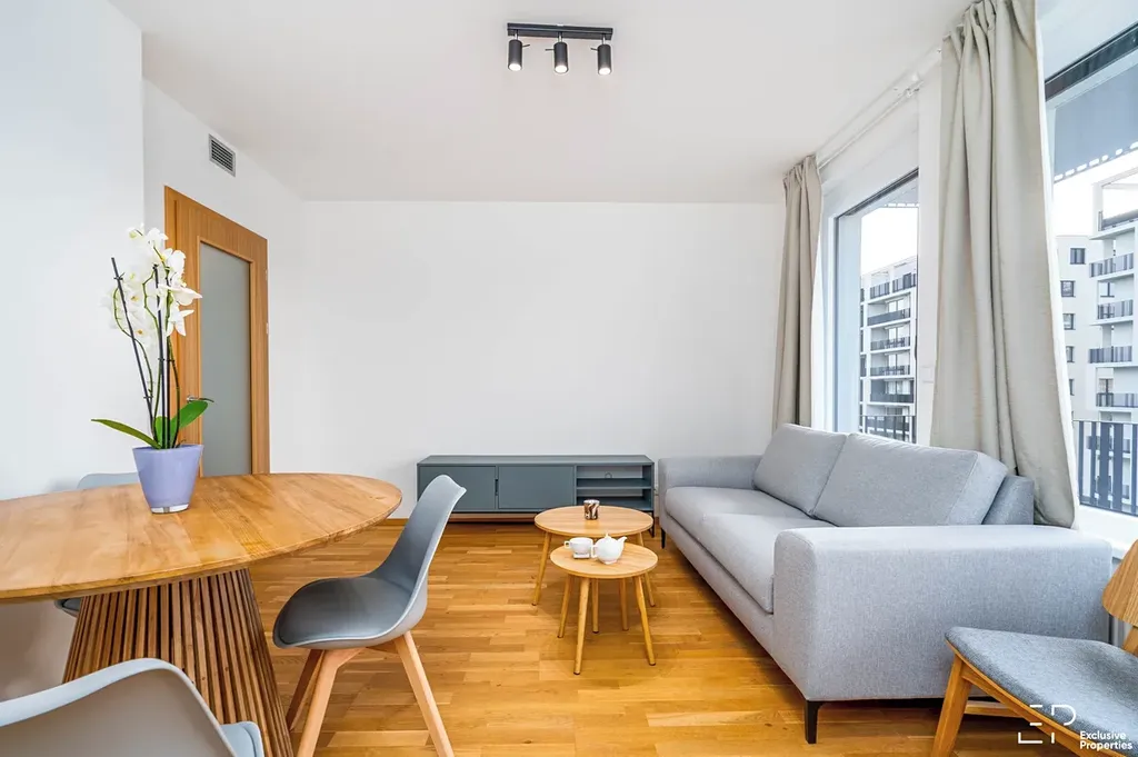 Byt je nově zařízený a připravený rovnou k nastěhování. V obývací části najdete sedací soupravu, TV stolek, jídelní stůl a plně vybavenou kuchyňskou linku se spotřebiči (varná deska, lednice, myčka, trouba, digestoř).