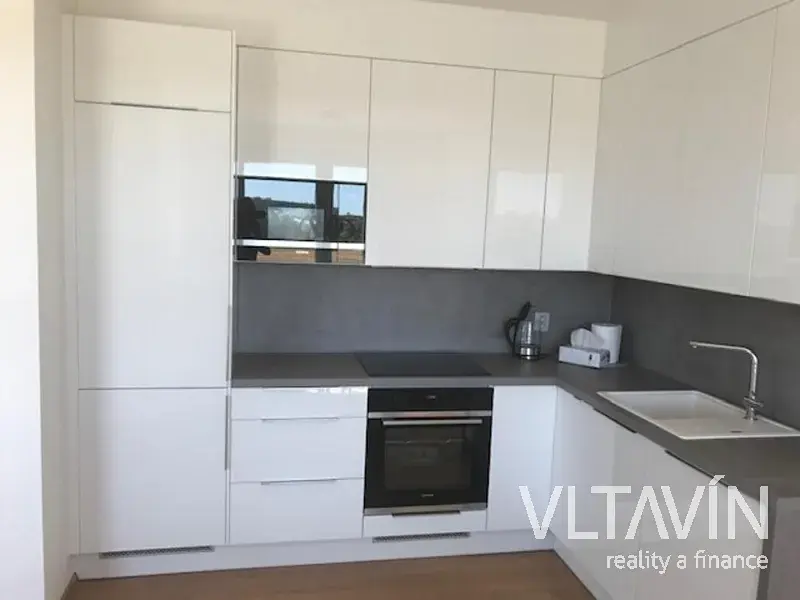 Byt se skládá ze vstupní chodby, obývacího pokoje s kuchyňským koutem, který je zařízený moderní kuchyňskou linkou, vč. vestavěných spotřebičů. Z obývacího pokoje je vstup francouzským oknem na balkon . Dále jsou v bytě 2 ložnice, koupelna a toaleta. V celém bytě je na podlaze plovoucí podlaha, v chodbě, koupelně a toaletě je dlažba. Poplatky činí 6.000, - Kč + elektřina. Majitel požaduje 2 kauce.