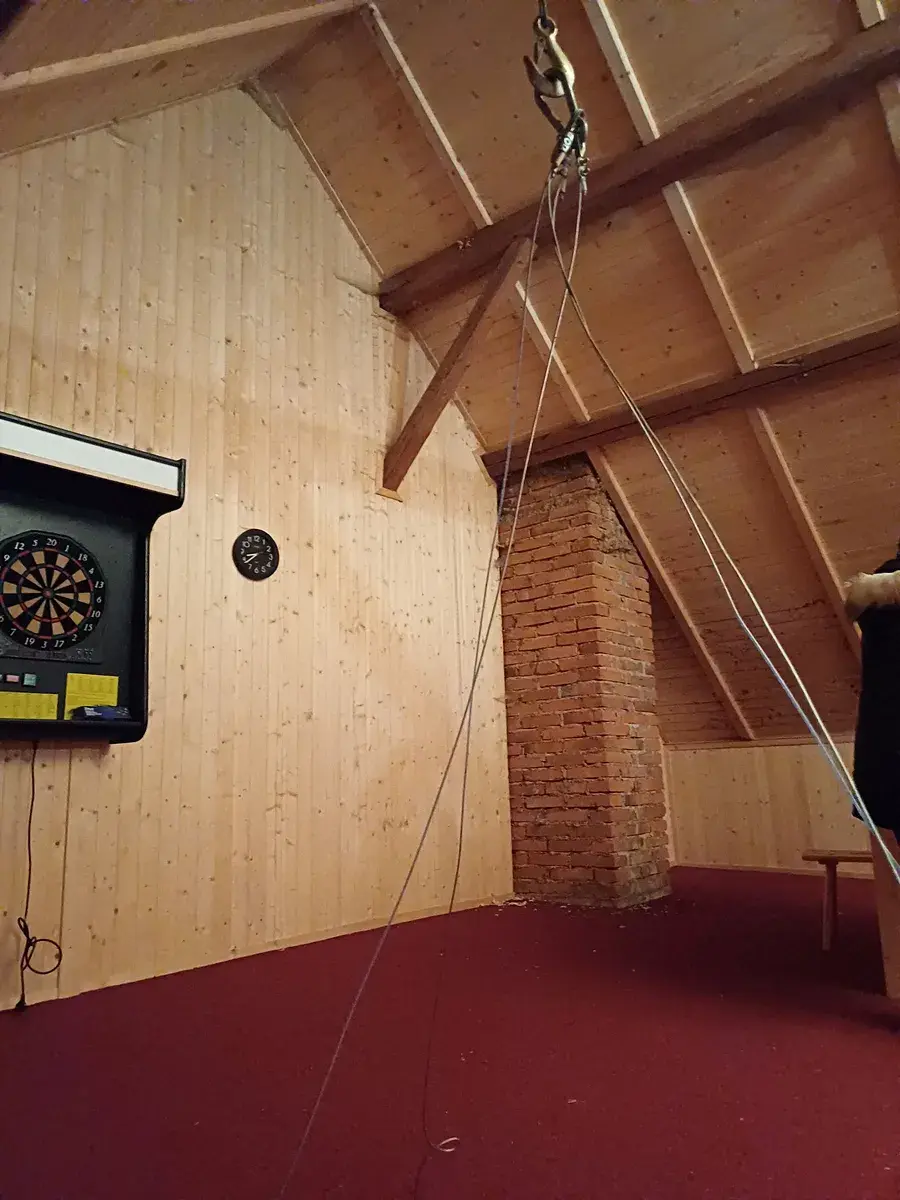 Stavba dílny má vybavenou dílnu s dvěma pracovnami, 2 garáže s výsuvnými vraty a s vybudovaným podkrovím, které je přístupné výsuvnými schůdky.