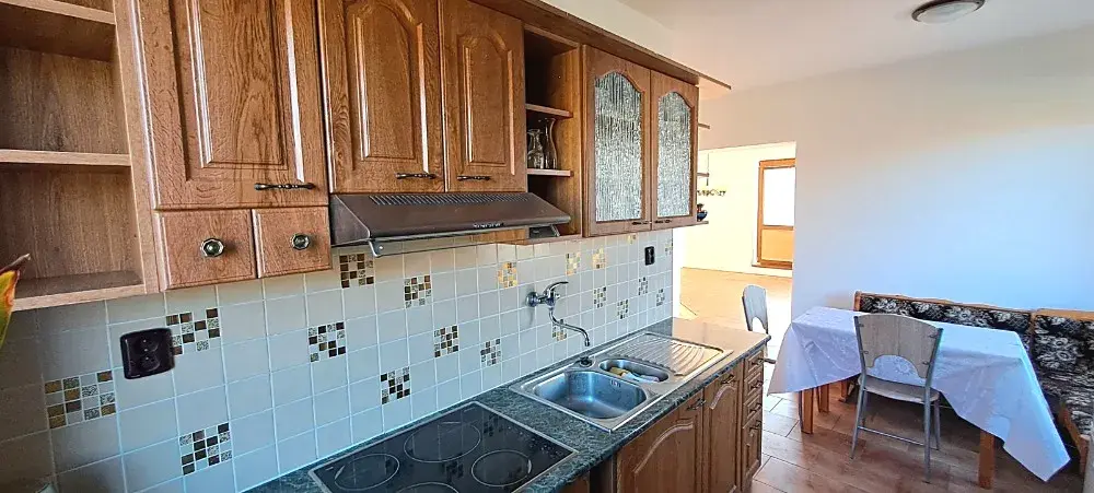 2.NP - ze schodiště je vstup do bytu o velikosti 3+1. Z chodby je vstup na balkon, samostatné wc, do spíže a do kuchyně s jídelnou. V kuchyni je kuchyňská linka s myčkou a elektrickou troubou. Z kuchyně je vstup do pokoje s krbem, odkud je vstup na balkon. Komín je vyvložkovaný a vyčištěný, v komíně je krbová vložka na topení tuhými palivy. Z chodby je vstup do dalších dvou pokojů a do koupelny, která byla zrekonstruovaná před pár lety.