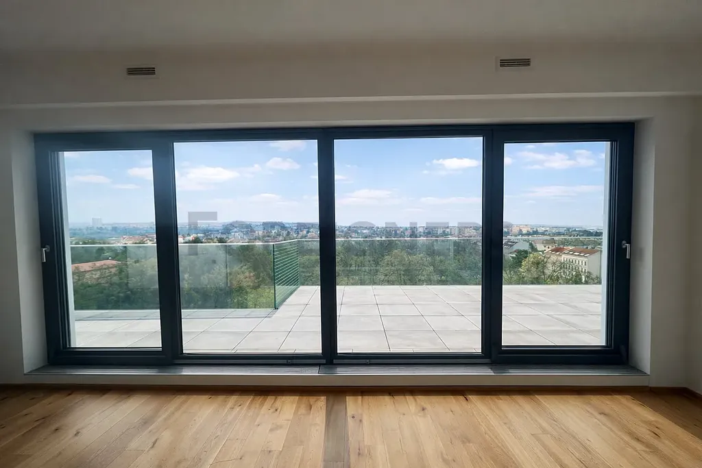 Luxusní a jedinečný byt 4+kk 95m2 s terasou 53 m², 2× parkování, velký sklep, šatna, 2x koupelna, poslední patro – Lidická / výhled na Lužánky