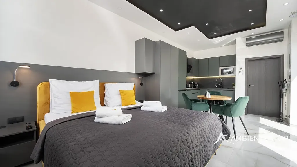Každý apartmán disponuje plně vybavenou kuchyní, koupelnou, klimatizací a zatemňovacími venkovními žaluziemi. Všechny místnosti mají samostatný termostat pro regulaci teploty, vytápění je zajištěno teplovodním podlahovým topením a ohřev vody zajišťují elektrické bojlery (každá jednotka má vlastní se zásobníkem 125 L). Každý byt má své podružné měřidlo elektřiny i vody, nemovitost má jednu hlavní přípojku elektřiny a vody.