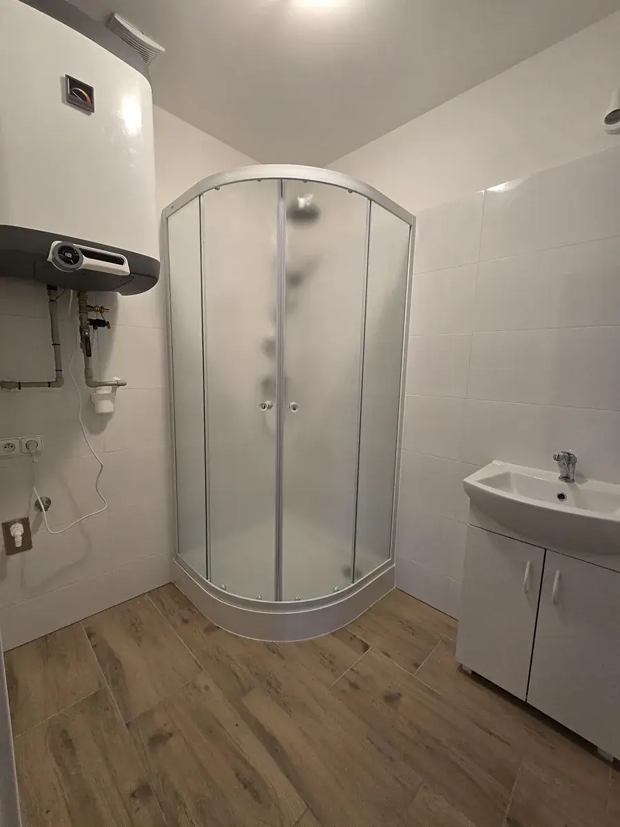Byt má své vlastní schodiště, kde si můžete umístit skříň na boty a oblečení. ( na schodišti bude položený koberec).