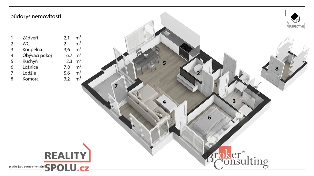 K bytu náleží také parkovací místo v garáži a komora na patře.