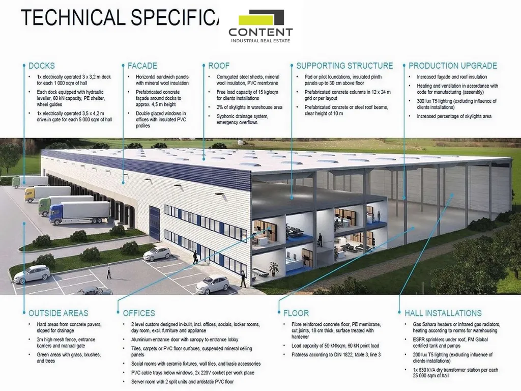 V zastoupení majitele a bez provize nabízíme pronájem skladu nebo výrobních prostor 11700 m², umístěných v novém komerčním parku přímo u dálnice D5, Exit 107.