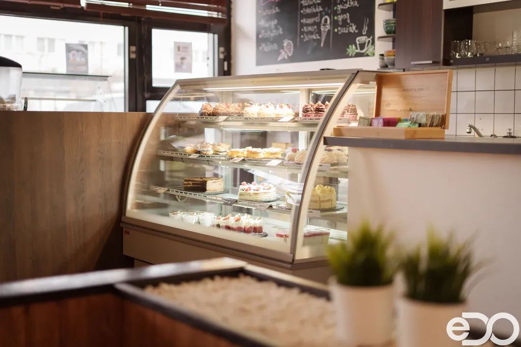 Velkou výhodou jsou dvě samostatné kuchyně – jedna na sladkou a druhá na slanou výrobu. Ideální řešení pro cukrárnu, kavárnu nebo třeba menší bistro koncept.