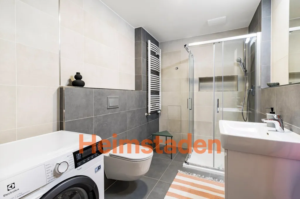 Byt o dispozici 2+kk se skládá z prostorného obývacího pokoje s kuchyňským koutem, samostatné ložnice, předsíně, komory a koupelny s WC. Velkým benefitem je balkon orientovaný do klidného vnitrobloku, ideální pro ranní kávu nebo večerní relax. Interiér je vkusně a prakticky zařízen, nechybí moderní kuchyňská linka s vestavěnými spotřebiči včetně myčky, trouby, indukční varné desky, lednice s mrazákem, dále rozkládací pohovka, jídelní stůl, postel, vestavěné skříně ani pračka. Byt nabízí dostatek úložného prostoru a je připraven k okamžitému nastěhování. Součástí nájmu je také jedno garážové parkovací stání. Elektřina a internet budou převedeny na nájemce.
