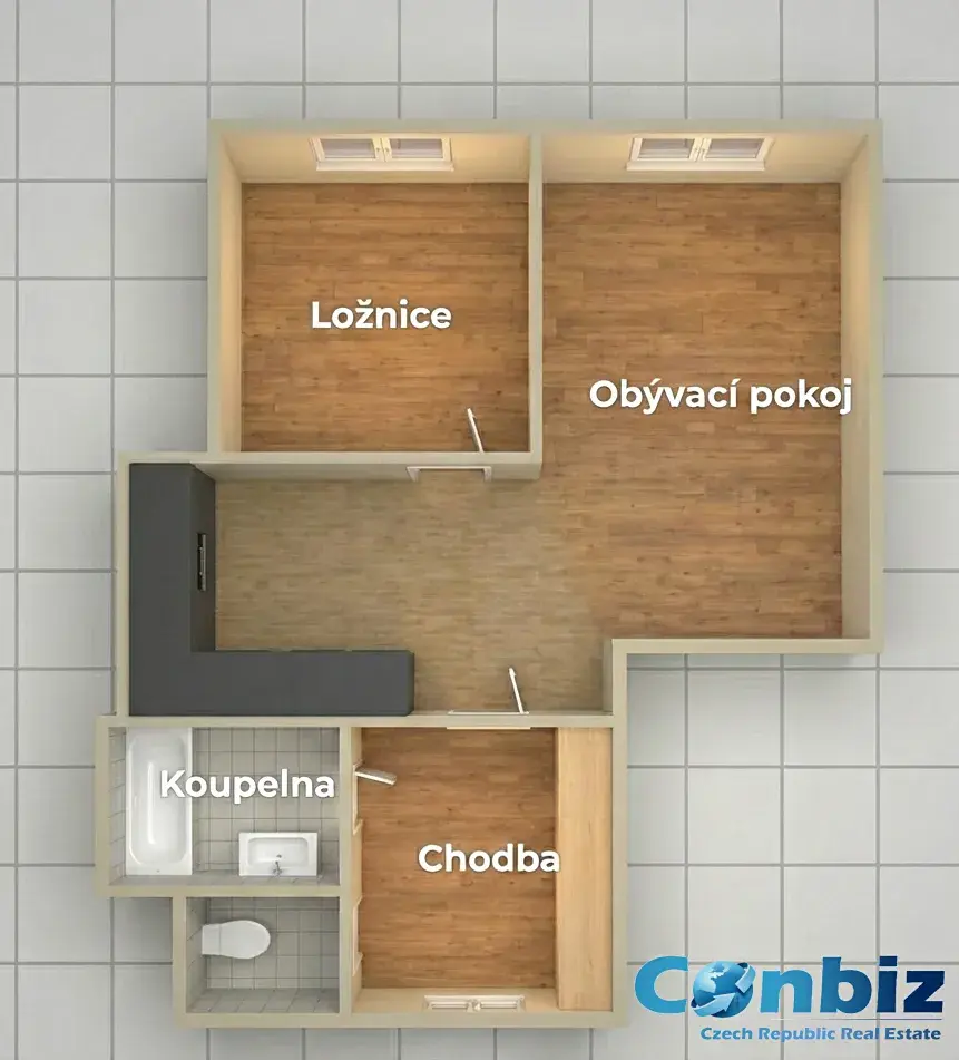 Prostorné a světlé pokoje: Byt se skládá ze dvou neprůchozích pokojů, které Vám zajistí dostatek prostoru pro život i relaxaci.