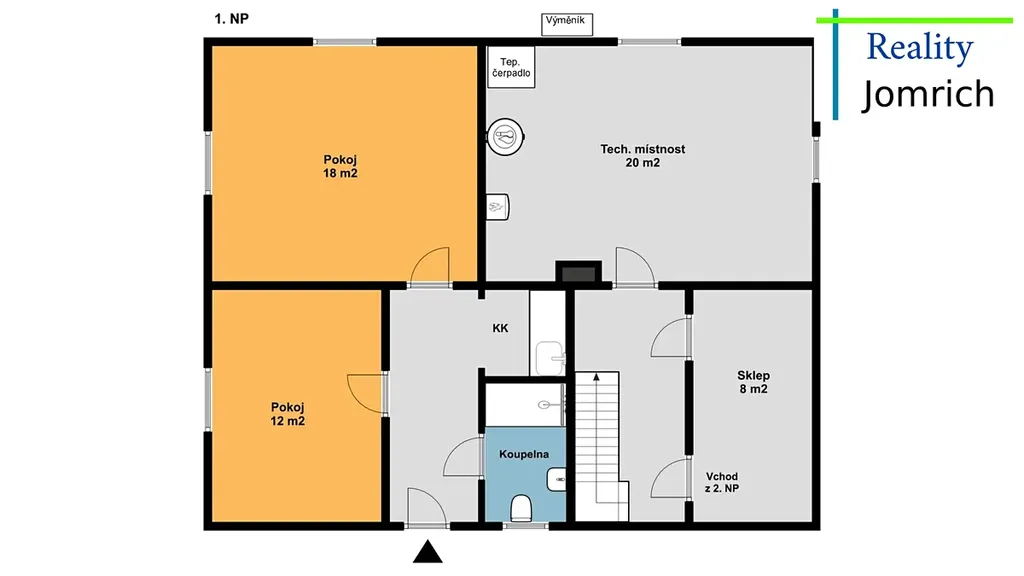 Snížené přízemí: byt 2+1 se samostatným vchodem, místnost s technologickým zázemím a úložné prostory.