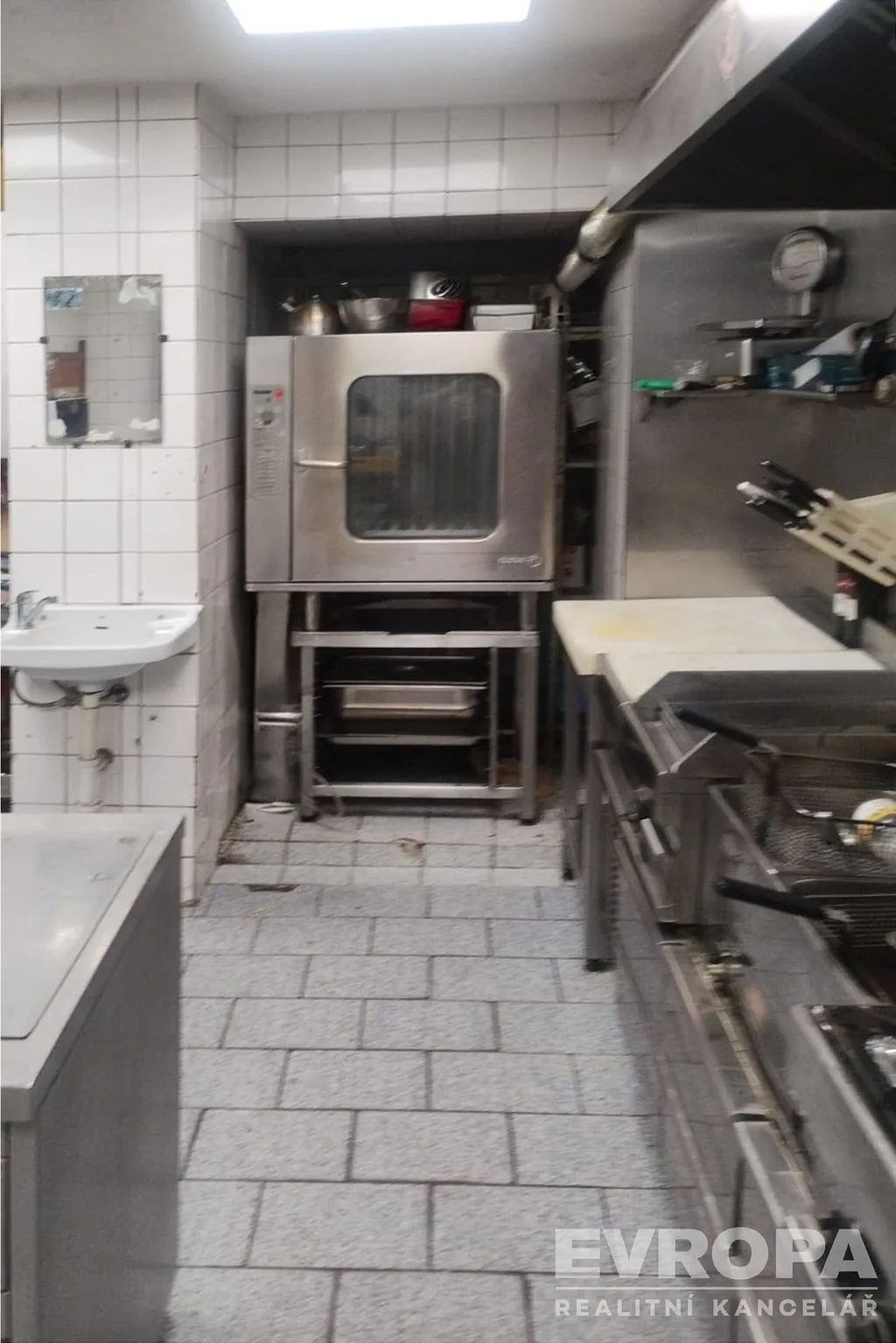 V přízemí je vstupní chodba, kancelář (recepce), vpravo restaurace s výčepem, restaurační kuchyně s PB sporáky a digestoří, příruční sklad, WC personálu, pivní sklep s kamennými klenbami , sklad s vodárnou, garáž s roletovými vraty (sklad), box lednice. výstup na venkovní terasu. Z chodby vlevo je vinárna, WCm, WCž, dvě technické místnosti.