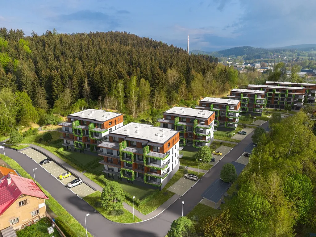 Moderní nadčasový projekt 7 bytových domů v západní části města Jablonce nad Nisou / Rýnovice / Jezdecká ulice - přímo pod Prosečským hřebenem – nadstandardní rezidenční bydlení volně navazuje na stávající výstavbu ve vyhledávané lokalitě Horní Proseče. Jednoznačnou předností lokality je její těsné sousedství s Prosečským hřebenem, na dohled známé turistické stezky „Vyhlídkový jablonecký okruh“ (16,3 km), les včetně naučné stezky „Po stopách 2 světové války“ a bývalého lesního divadla - po 2,5 km se dostanete značenými turistickými cestami přímo k Prosečské chatě – výletní restaurace s původní kamennou rozhlednou (593 m.n.m.) – nově otevřeno 20.8.2018 – dominanta Prosečského hřebenu.