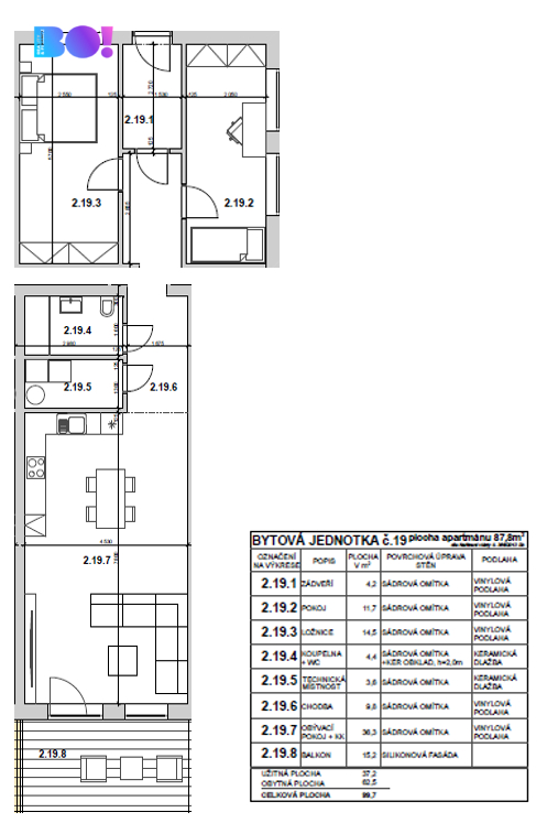 Kompletně nový a plně vybavený apartmán 3+kk 87,8 m² a terasa 15,2 m².