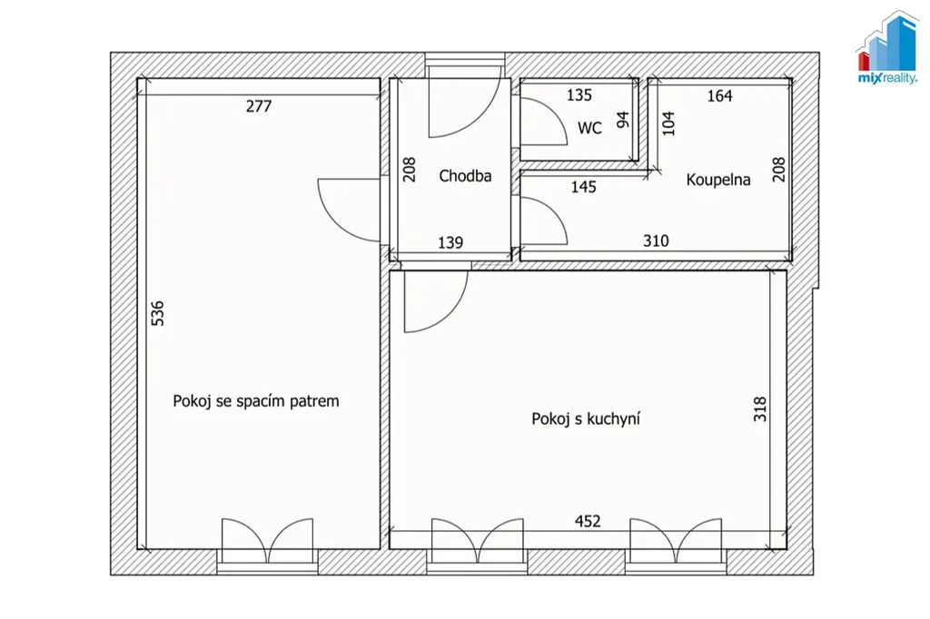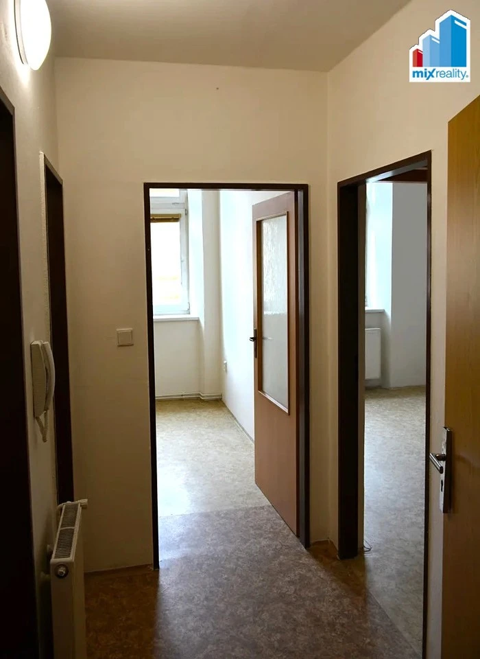 V bytě se nachází předsíň, pokoj s kuchyňským koutem, samostatný pokoj, koupelna s vanou a samostatné WC.