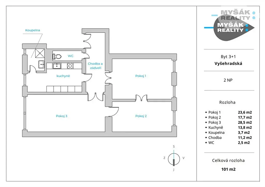 Prodej bytu 3+1, Praha - Nové Město, Tyršova, 62 m2