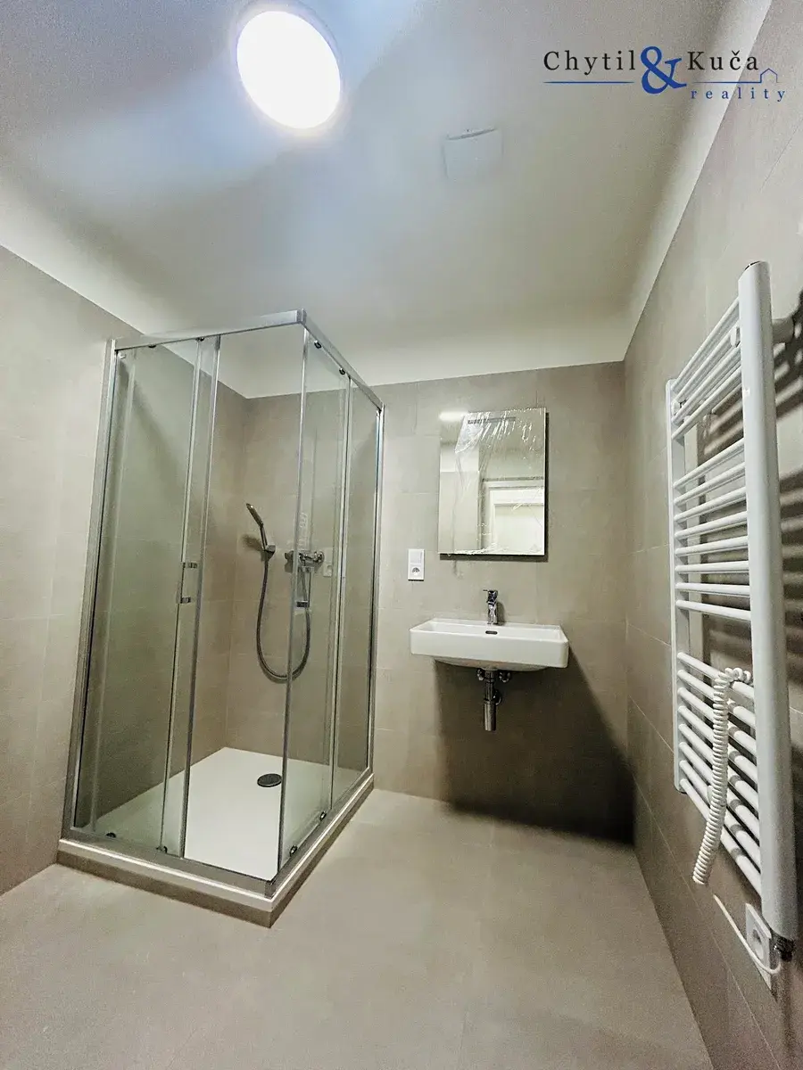 Byt je úplně nový, zatím zde nikdo nebydlel. Nachází se zde prostorná chodba, koupelna se sprchovým koutem, wc, ložnice, obývací pokoj s kuchyňským koutem.