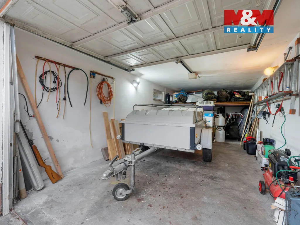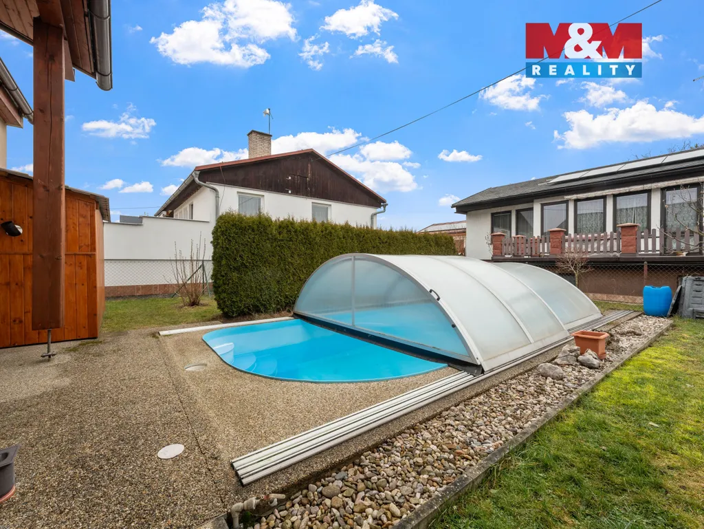 Dům disponuje jedním nadzemním a jedním podzemním podlažím, kde v prvním podlaží nalezneme kuchyni, obývací pokoj se vstupem na prostornou zastřešenou terasu, jídelnu, ložnici, další pokoj, koupelnu, chodbu a samostatnou toaletu. V podzemním podlaží domu se nachází garáž pro jedno auto, která disponuje elektrickými vraty, dále technická místnost, technologie pro bazén a několik místností vhodných pro ukládání věcí. K domu dále náleží krytý bazén.
