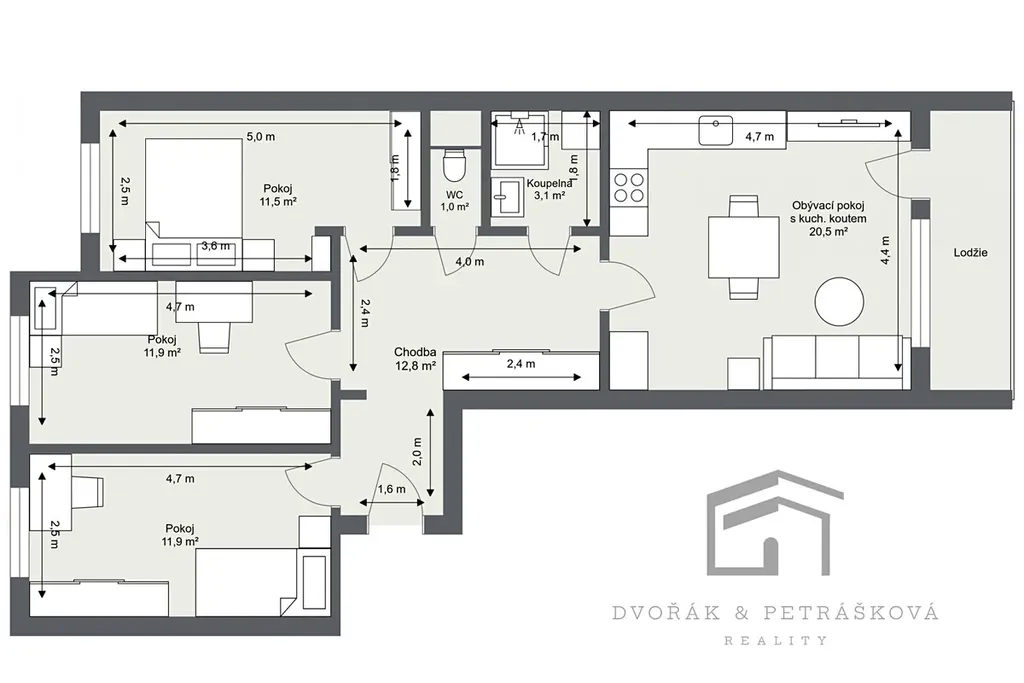 Realitní společnost Dvořák & Petrášková reality vám nabízí k pronájmu byt v osobním vlastnictví o dispozici 4+kk s prostornou lodžií v pražských Modřanech, na adrese Levského 3208/9. Neplatíte provizi RK.