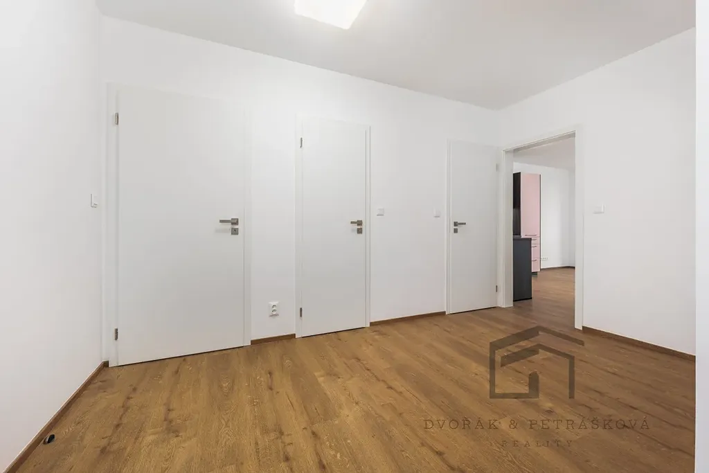 Nově zrekonstruovaný byt s podlahovou plochou 73 m2 a s lodžií 5 m2 se nachází ve druhém patře panelového domu. Byt prošel nákladnou rekonstrukcí a je vhodný pro rodinu s dětmi. Bytová jednotka disponuje prostornou vstupní chodbou s dostatkem místa na šatní skříně a oddělenými vstupy do jednotlivých pokojů. Dva dětské pokoje nebo pokoj a pracovna mají stejnou výměru - každý 12 m2, ložnice 11,5 m2. Koupelna disponuje sprchovým koutem a místem na pračku, toaleta je oddělená. Obývací pokoj s přístupem na lodžii a plně vybavenou Oresi kuchyní -vestavěnou myčkou, indukční varnou deskou, elektrickou horkovzdušnou troubou a digestoří, s dostatkem úložného prostoru a lednicí s mrazákem. Kuchyně je podsvícená i uvnitř horních skříněk, proto jsou na fotografiích zelené pruhy (odlesk světla). Použitý nábytek je pouze ilustrační a není součástí pronájmu ani jej nelze ponechat.
