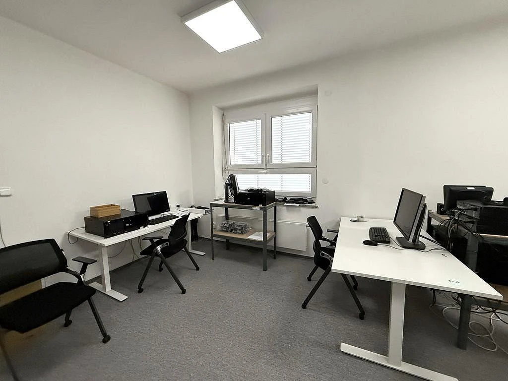 Nabízený nebytový prostor se nachází v kamerově hlídané budově za bránou. Kancelář má celkovou výměru cca 38 m² a nachází se v přízemí. Prostor je příjemně prosvětlený díky dvěma oknům, která vytvářejí vzdušnou a komfortní pracovní atmosféru. Kancelář je nově vybavena malou kuchyňskou linkou s dostatečným úložným prostorem a dřezem. Na chodbě jsou společné prostory jako je WC nebo zasedací místnost, kterou si lze pronajmout za poplatek. Zasedací místnost je vybavena velkým stolem se židlemi, křesly, televizemi a dalším nábytkem včetně kuchyňské linky s dřezem a lednicí.
