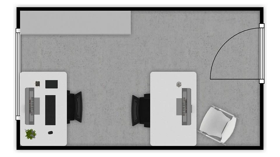 Nabízený prostor tvoří samostatná menší kancelář o velikosti cca 12 m², vhodná pro jedno až dvě pracovní místa. Místnost se nabízí bez vybavení. Kancelář disponuje oknem orientovaným do klidné části objektu. Na chodbě jsou společné prostory jako je WC nebo zasedací místnost, kterou si lze pronajmout za poplatek. Zasedací místnost je vybavena velkým stolem se židlemi, křesly, televizemi a dalším nábytkem včetně kuchyňské linky s dřezem a lednicí.