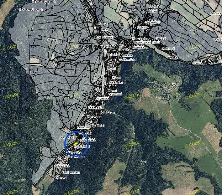 Budova č. 2 – stavba občanské vybavenosti na p. č. 779 v kat. území Hanušovice; zastavěná plocha a nádvoří o výměře 1460 m².