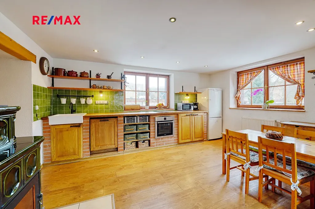 Chalupa o zastavěné ploše 158 m² a užitné ploše 96 m² nabízí komfortní bydlení s dispozicí 4+kk. Interiér prošel nedávnou rekonstrukcí a vytváří útulné a moderní prostředí. Vytápění je zajištěno krbovými kamny s výměníkem a vyvložkovaným nerezovým komínem, které efektivně rozvádí teplo do radiátorů po celém domě. Pro zvýšený komfort je v části domu instalováno podlahové vytápění. Ohřev vody probíhá kombinací elektrobojleru a krbových kamen, což poskytuje praktické a úsporné řešení pro každodenní potřebu teplé vody.