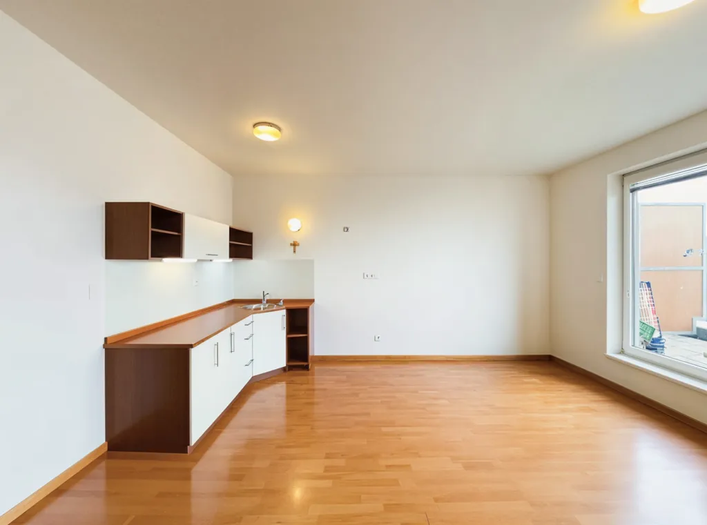 Srdcem bytu je obývací pokoj propojený s kuchyňským koutem. Kuchyň je vybavená dvou plotýnkou a lednicí; díky své praktické velikosti se dobře udržuje a nechává dost prostoru pro vlastní úpravy a doplnění podle vašeho stylu.