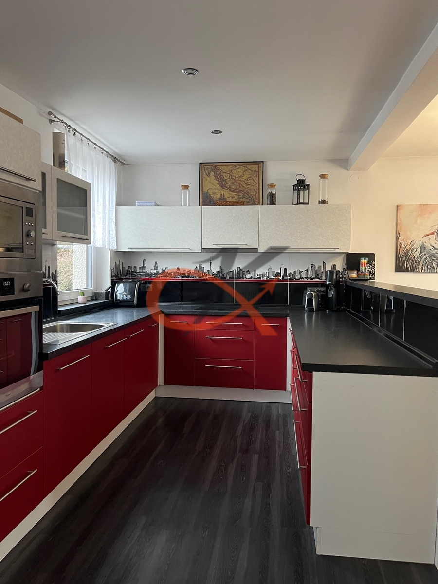 Prodej rodinného domu 6+1 v centru obce Vlčková. Jedná se o dům pocházející z roku 1986, který před 12 lety prošel rekonstrukcí. V přízemí se nachází garáž, dílna, kotelna, WC, prádelna, pokoj s krbem a terasou. V mezipatře domu je situován prostorný obývací pokoj spojený s kuchyní, ze které je vstup na venkovní terasu. V patře domu jsou dva pokoje s balkonem, posilovna-pracovna, ložnice s prostornou šatnou, koupelna s vanou, samostatná toaleta. Dům je prostorný a dispozičně velice dobře rozdělený, zastavěná plocha domu je 157m2. Pozemek o celkové rozloze 1539m2 včetně zastavěné plochy. Topení ústřední – kotel na TP nyní se topí Peletkami, obecní vodovodní řád, kanalizace. Na zahradě jsou vzrostlé ovocné stromy, pozemek je částečně oplocen.