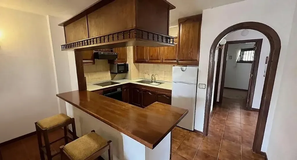 K prodeji nabízíme velmi pěkně udržovaný apartmán s 1 ložnicí a 1 koupelnou, nacházející se v oblíbeném rezidenčním komplexu Paloma Beach v Los Cristianos, pouhé 2 minuty od pláže. Apartmán se nachází v 1. patře budovy s výtahem, má celkovou plochu 102 m² a nabízí velkorysý prostor, který je ideální jak pro trvalé bydlení, tak pro druhý domov u oceánu. Dispozice zahrnuje světlý obývací pokoj s jídelní částí a otevřenou kuchyní s barovým pultem. Z obývacího prostoru je přímý vstup na prostornou dvojitou terasu orientovanou na západ, kde si můžete užívat odpolední a večerní slunce a příjemné výhledy směrem k bazénu. Součástí bytu je velká ložnice s vestavěnými skříněmi a prostorná koupelna se sprchovým koutem. Nemovitost se prodává plně zařízená a vybavená, připravená k okamžitému nastěhování. Komplex Paloma Beach je velmi dobře udržovaný a nabízí fantastické komunitní bazény, z nichž hlavní je vyhřívaný, dále lehátka, slunečníky a bezbariérový přístup. Lokalita je výjimečná – restaurace, kavárny, obchody i promenáda jsou v pěší vzdálenosti.