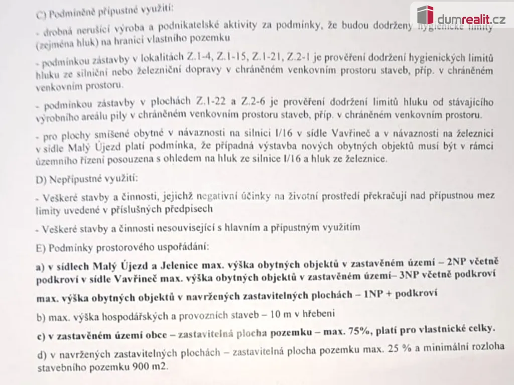 možný prodej pozemku pro výstavbu RD. Jde celkem o 1335 m² pozemku, který je z části oplocený. Na pozemek je přivedena voda a elektřina. Kanalizace je v příjezdové cestě. V současníé době není možné připojení na kanalizaci a to z důvodu kapacitních a také z důvodu záruční lhůty na komunikaci. To vše by mělo být do 5/2028 možné. Zatím je možné umístit jímku na odpadní vodu. Vjezd je možné vybudovat přes stávající oplocení kolem komunikace. Dle předběžné informace o podmínkách využívání území a změn jeho využití je možné bydlení v rodiných domech - venkovské. Zastavitelnost území je 25% a výška domu je přípustná 1 NP+ podkroví. Cenu nabídněte, prosím. Bližší informace u makléře. Ev. číslo: 654665.