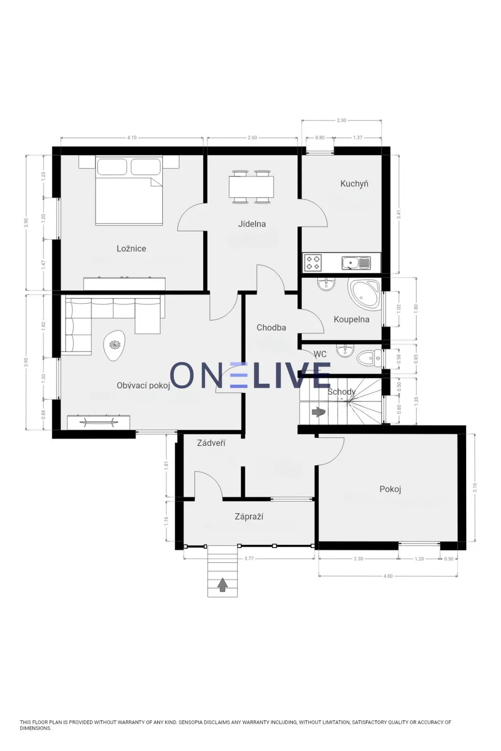 Dům se skládá ze dvou bytových jednotek, každá s vlastním sociálním zařízením a kuchyní. Po vstupu do domu je k dispozici samostatný pokoj, ideální jako menší obytná místnost, např. pro návštěvy. V přízemí se nachází byt o dispozici 3+1, který zahrnuje dva pokoje, jídelnu, kuchyň a vlastní sociální zázemí. V patře je umístěna prostorná jednotka 3+kk. Navíc je zde technická místnost, kde je umístěn bojler a je zde dostatek úložného prostoru. Z horního patra je přístup na balkon, kde je možné si vychutnat příjemné venkovní posezení.