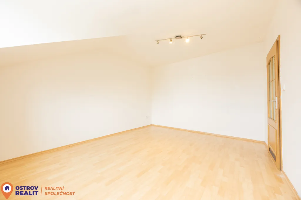 Byt zaujme svou jedinečnou atmosférou – šikmé stropy, vzdušný prostor a originální charakter podkroví vytváří velmi příjemné a klidné bydlení.