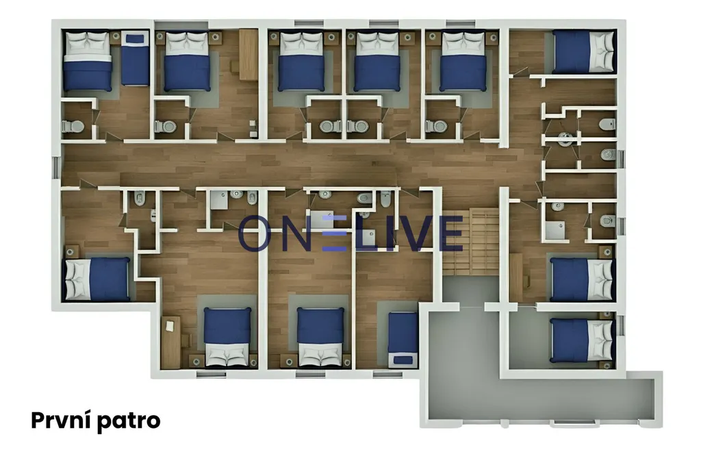 Objekt nabízí 12 plně vybavených apartmánů s kapacitou 42 lůžek, každý s vlastním sociálním zázemím. Dále zahrnuje dvě samostatné apartmánové jednotky – jednu s vlastním vstupem ze zahrady a druhou v samostatném objektu na okraji lesa.