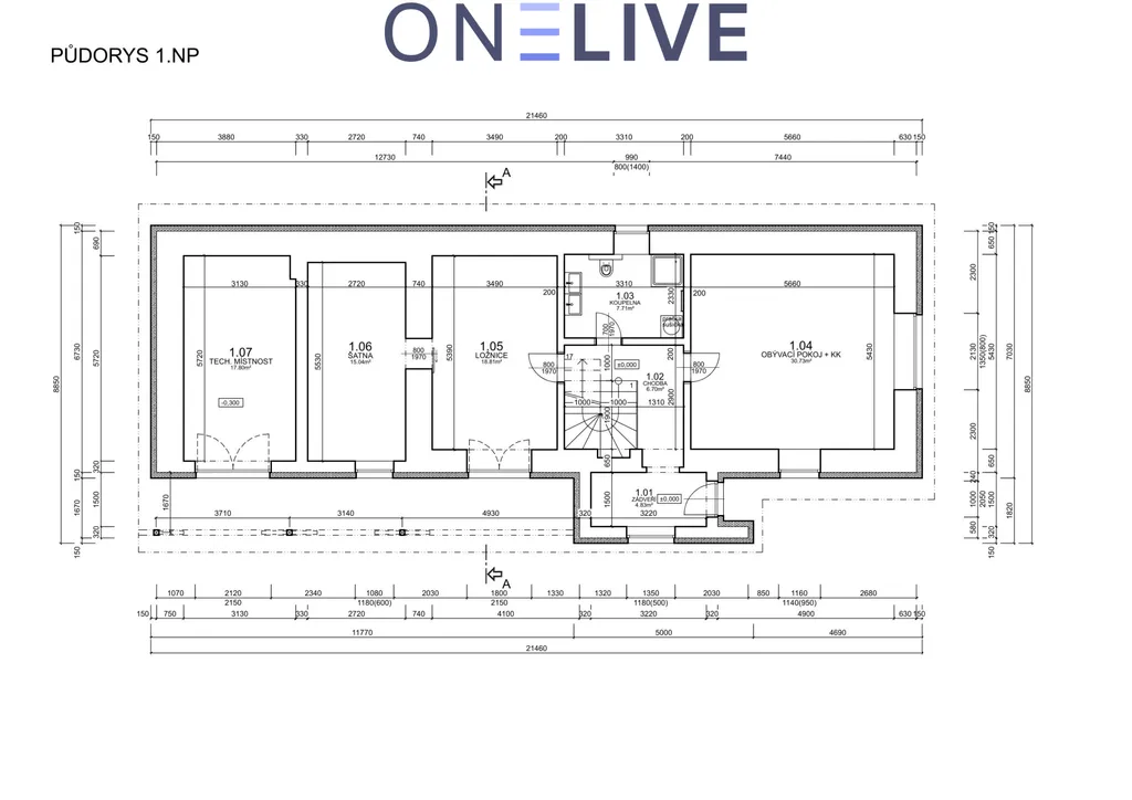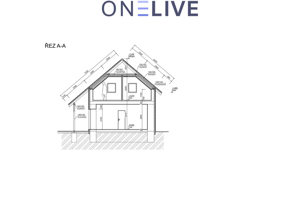 masivní nosné zdi – přízemí stěny 80 cm + zateplení, patro 30 cm + zateplení