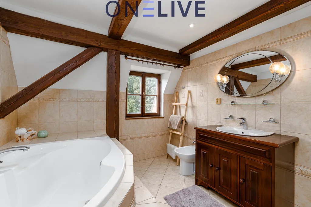 Samotný dům o ploše cca 650 m² je nyní rozdělen na 4 byty (5 koupelen, 8 WC, 5 kuchyní), ale lze jej jednoduše proměnit na velkorysé rodinné sídlo, vícegenerační bydlení nebo kombinaci bydlení a podnikání.