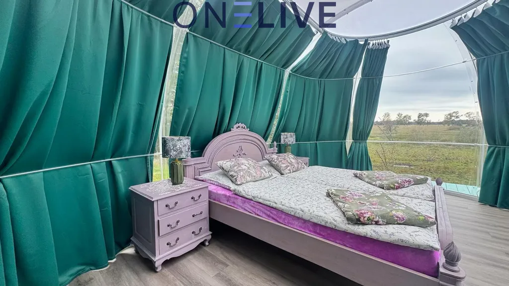 V areálu se nachází plně vybavená glampingová kopule vhodná pro romantické přespávání, pro děti nebo návštěvu nebo i jako zdroj přivýdělku.