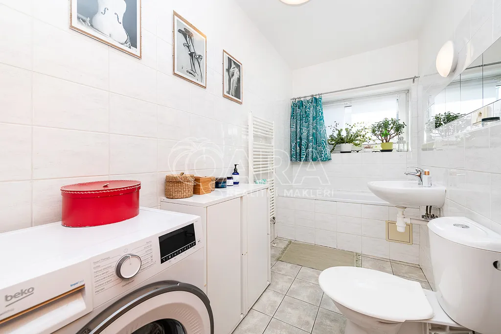 Součástí bytu je koupelna s vanou, toaletou, umyvadlem a místem pro pračku a další úložné potřeby. Kuchyňská linka je vybavena sklokeramickou deskou, el. troubou, digestoří s odtahen do komínu, myčkou. K bytové jednotce se prodává podíl na kotekně a kolárně v domě. Byt je v perfektním stavu a připravený k okamžitému nastěhování. Tohle není jen byt, tohle je životní styl pro ty, kdo chtějí mít všechno - přírodu, dostupnost i moderní bydlení v atraktivní lokalitě hlavního města.
