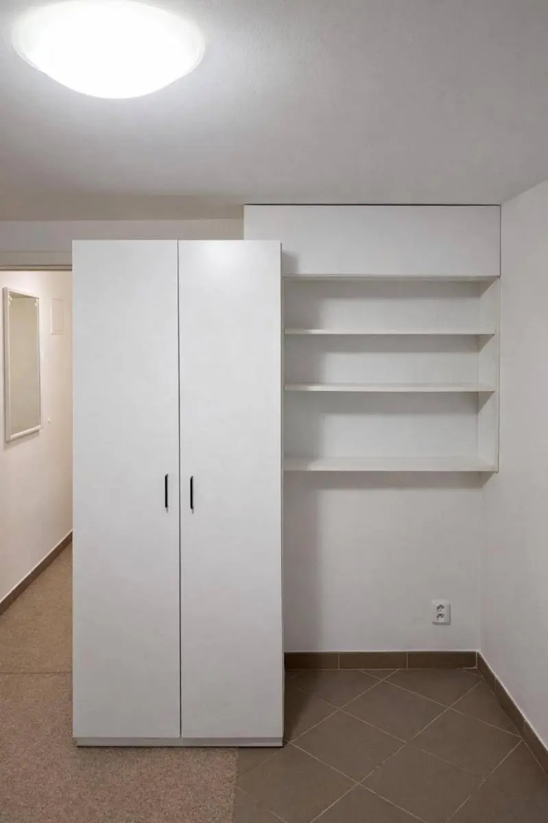 Z předsíně je vstup do první místnosti, která je vybavena šatní skříní a policemi pro dostatek úložného prostoru. Z okna je příjemný výhled do malé, upravené zahrady.